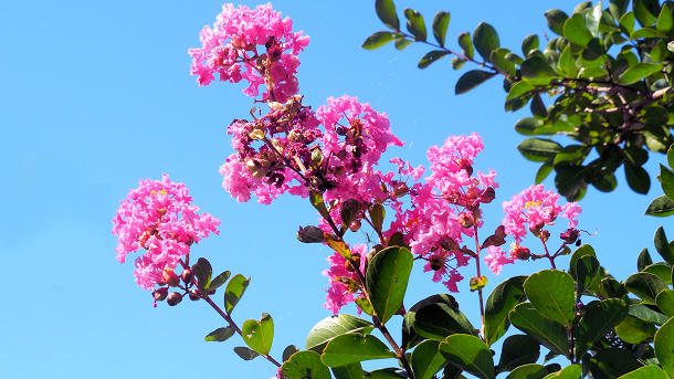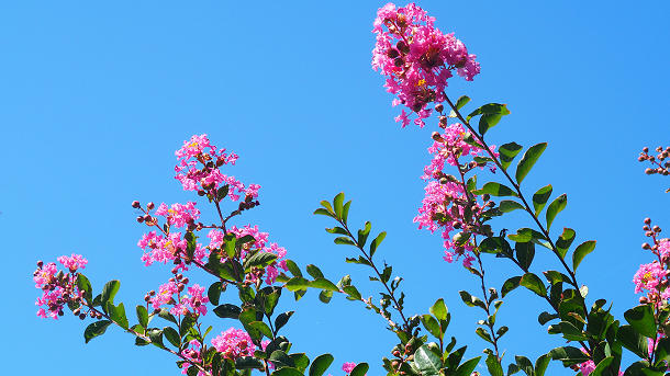 最高気温35℃以上の猛暑日が続く中、百日紅咲く