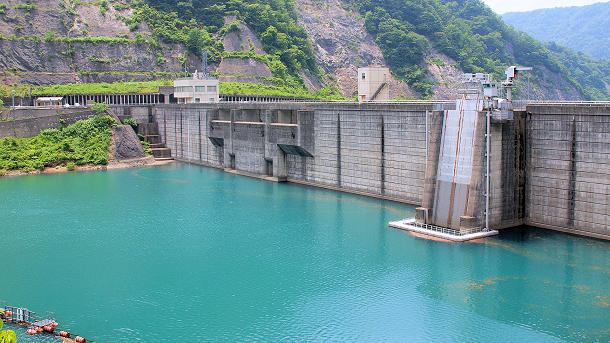 富山県営朝日小川ダム湖 右岸から堰堤 2012/06/03 撮影