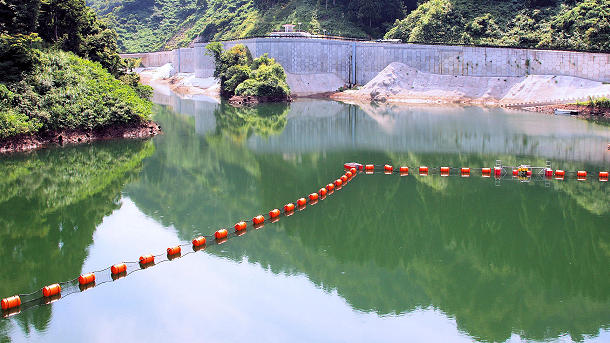 富山県入善町舟見地先にある舟川ダム湖 堰堤天端からダム湖上流側