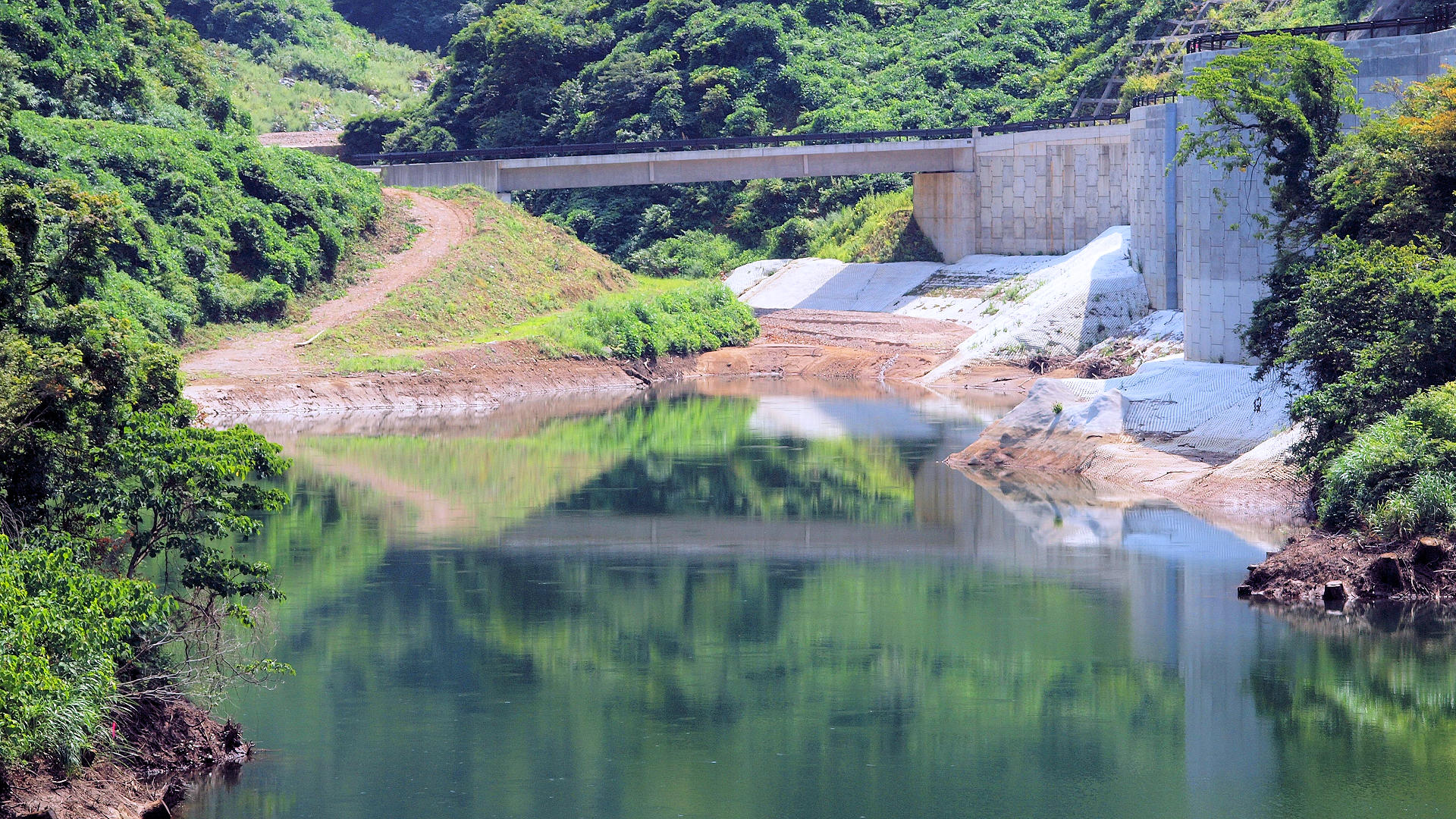 富山県営舟川ダム湖 ダム湖上流のトンゴ橋 2012/09/05 撮影