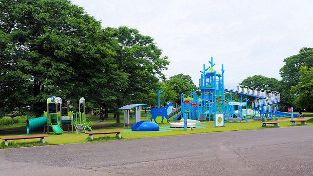 富山県民公園太閤山ランドのリニューアルされた複合遊具