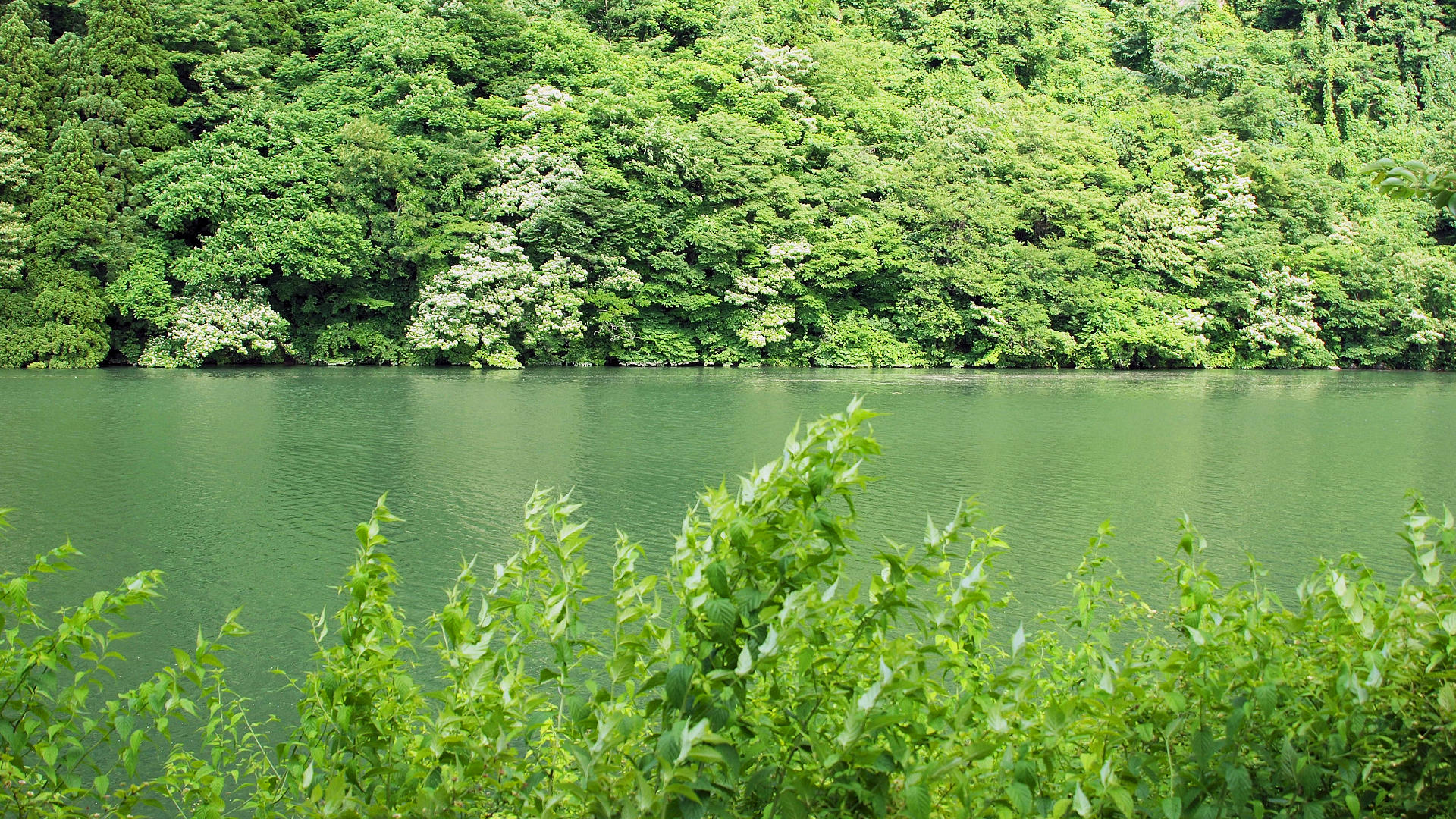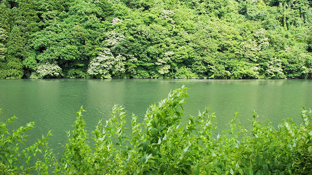 ている。右岸は砺波市庄川町庄で湖岸から林道まで約400m離れており、