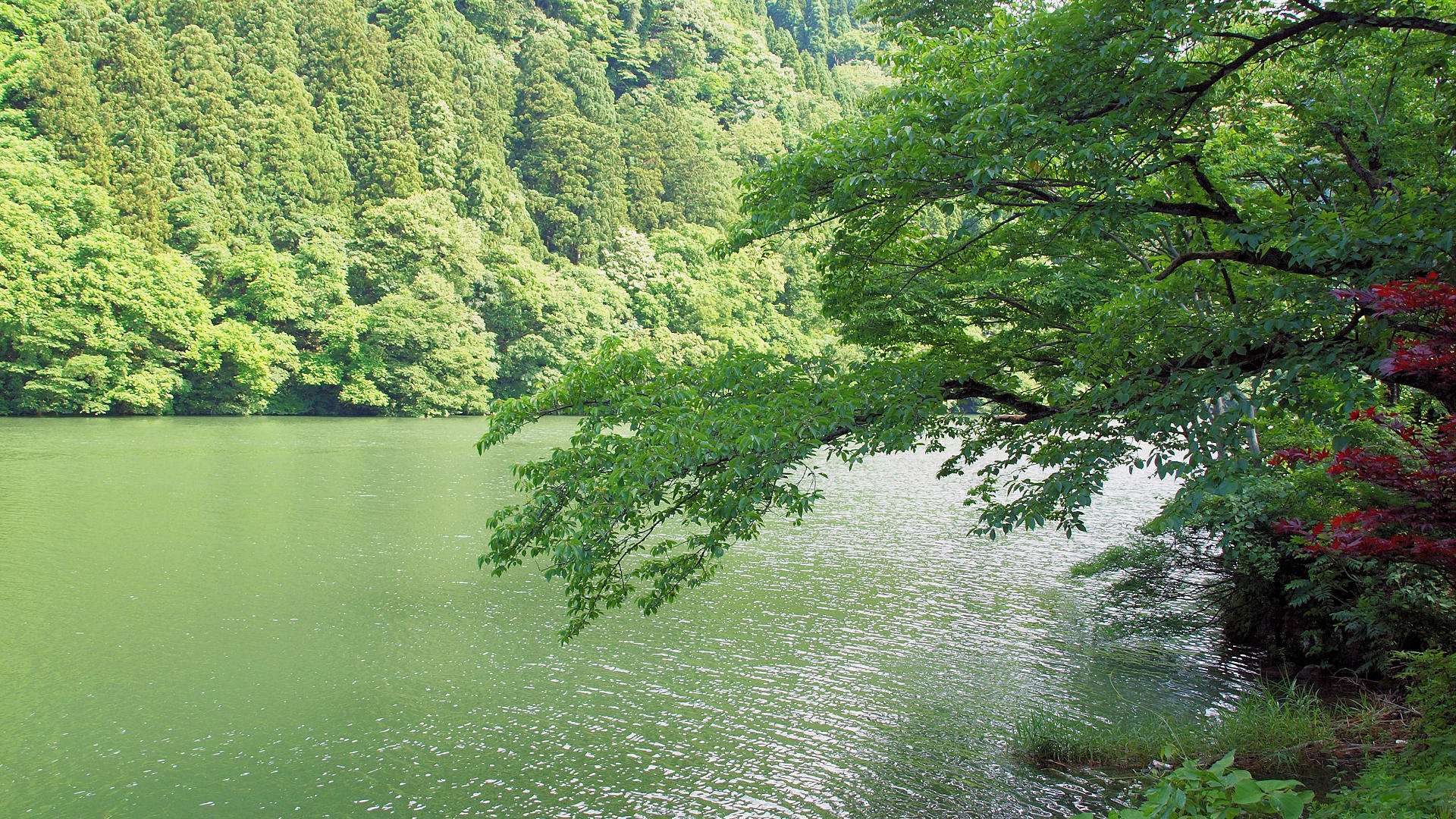 ている。右岸は砺波市庄川町庄で湖岸から林道まで約400m離れており、