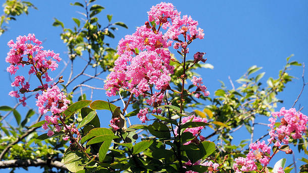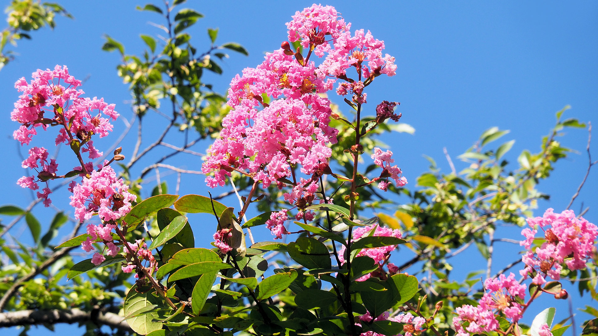 富山市水橋開発の常願寺川公園に咲くサルスベリ(百日紅)