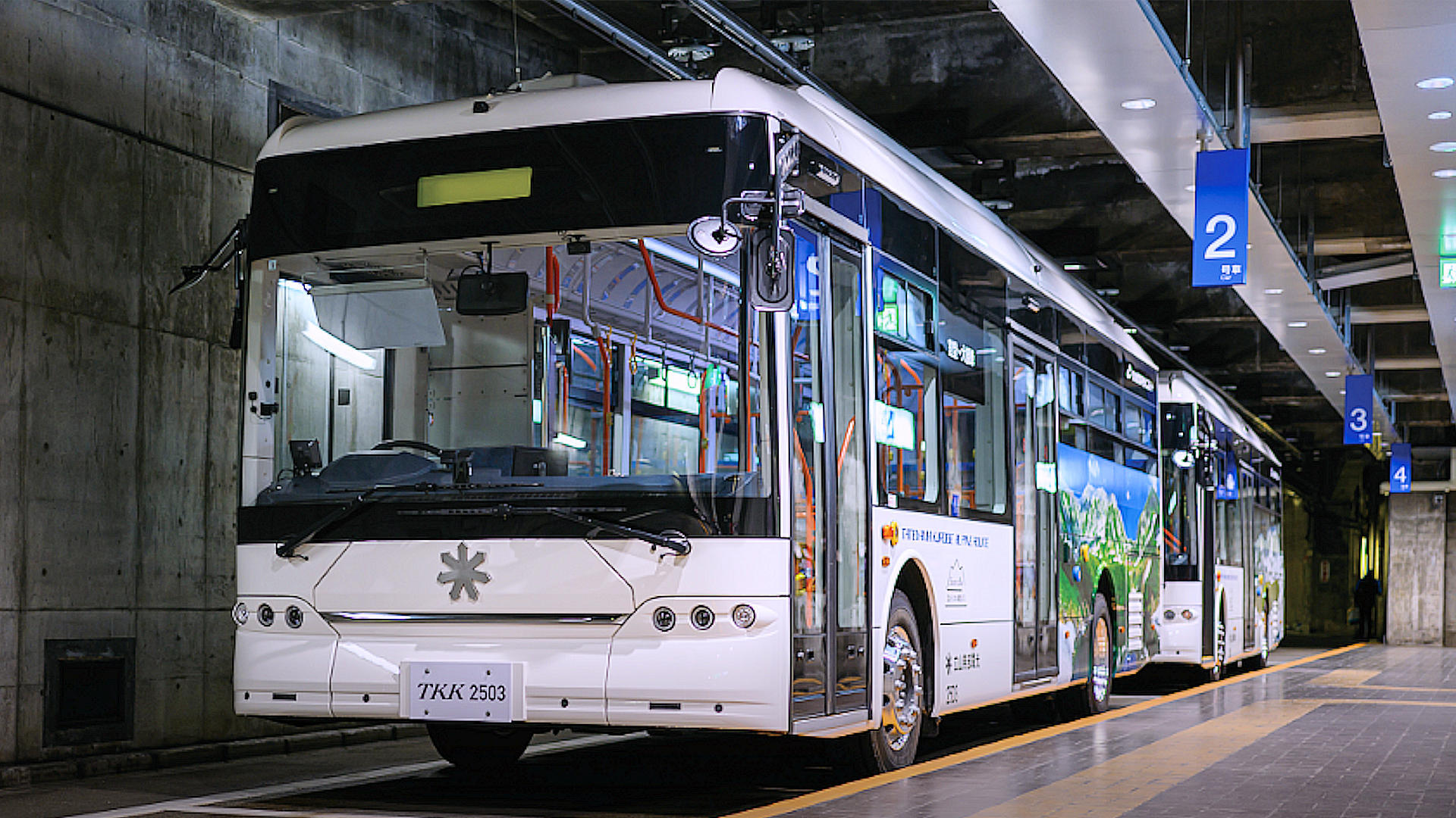 電気バスは4月から運行を始め、昨シーズンで役目を終えたトロリーバス