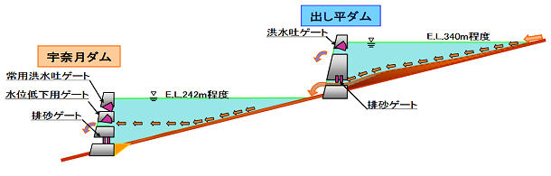 大雨などの際にダムへ流れ込む細かな土砂を流し、排砂時の環境負荷を軽