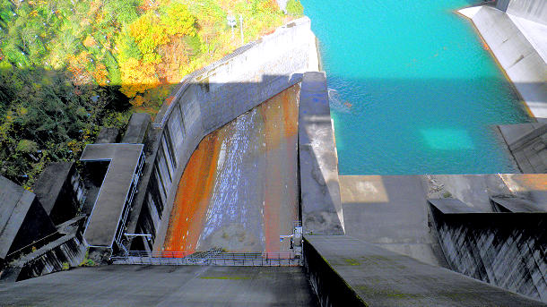 も珍しいこの方式でダムに堆積した土砂を排砂している。同様の排砂は中国