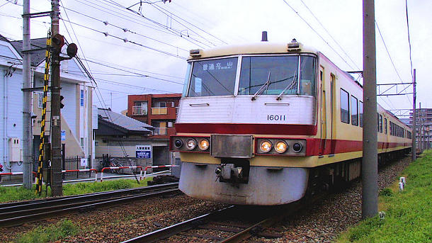 電鉄富山−稲荷町間を走る16011+16012+111寺田経由立山行き、