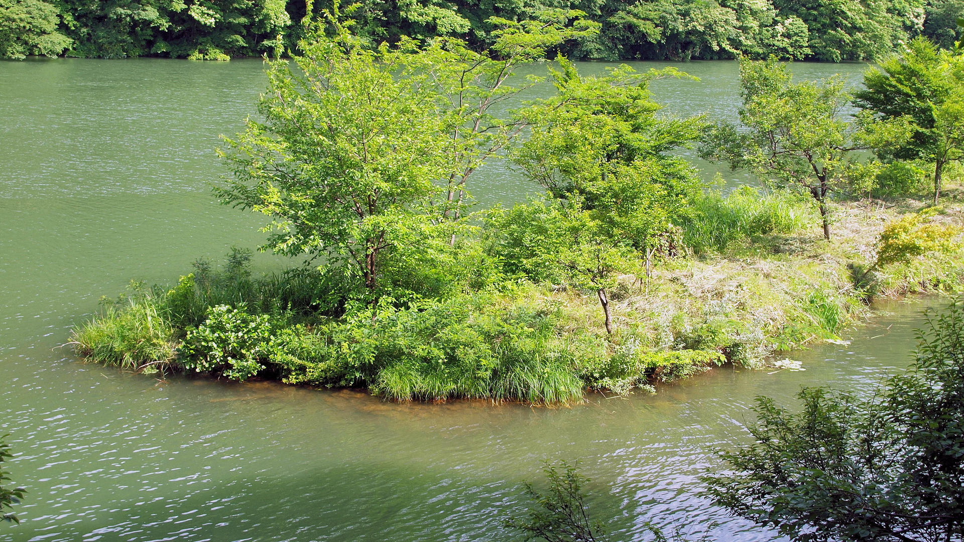 ている。右岸は砺波市庄川町庄で湖岸から林道まで約400m離れており、