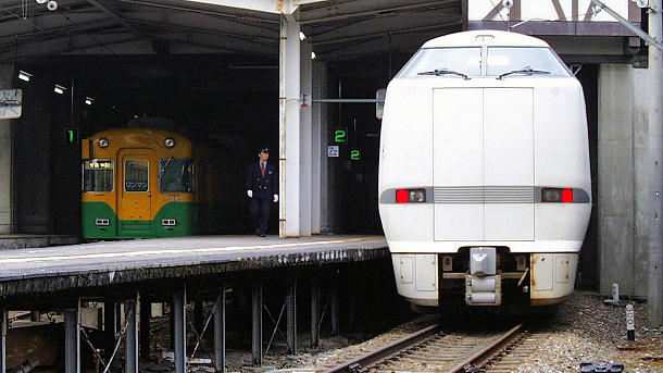 立山駅に停車中の681系サンダーバード立山大阪行き 1999/05/16 撮影