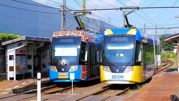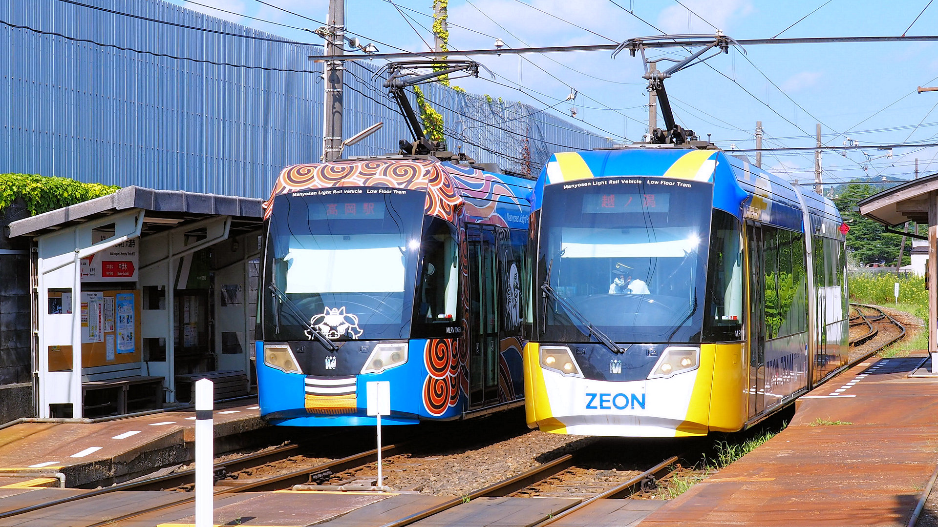万葉線 新湊港線六渡寺駅で行き違う1005と1001 2025/08/24 撮影