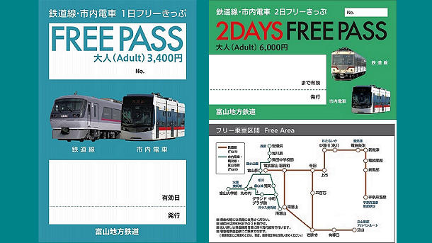 あいの風とやま鉄道の1日フリー乗車券は1500円。富山地方鉄道の運