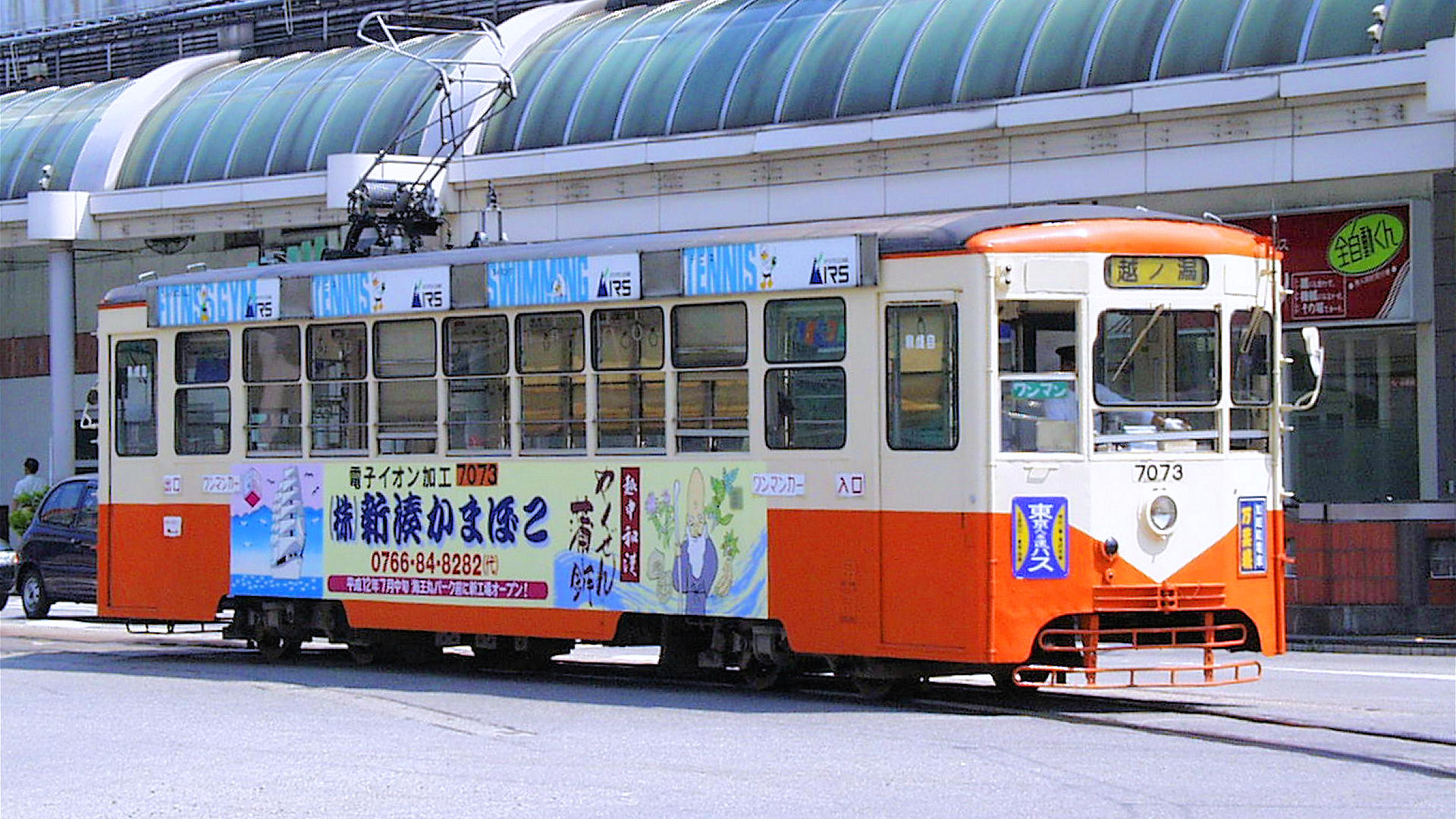 高岡軌道線高岡駅前駅に到着する7073越ノ潟行き 1999/06/12 撮影