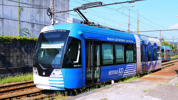 万葉線・新湊港線六渡寺駅を発車した1004越ノ潟行き 2025/08/24 撮影