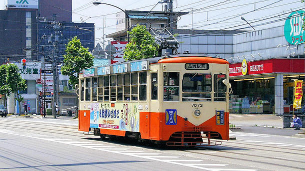 高岡軌道線志貴野中学校前駅を発車した7073高岡駅前行き