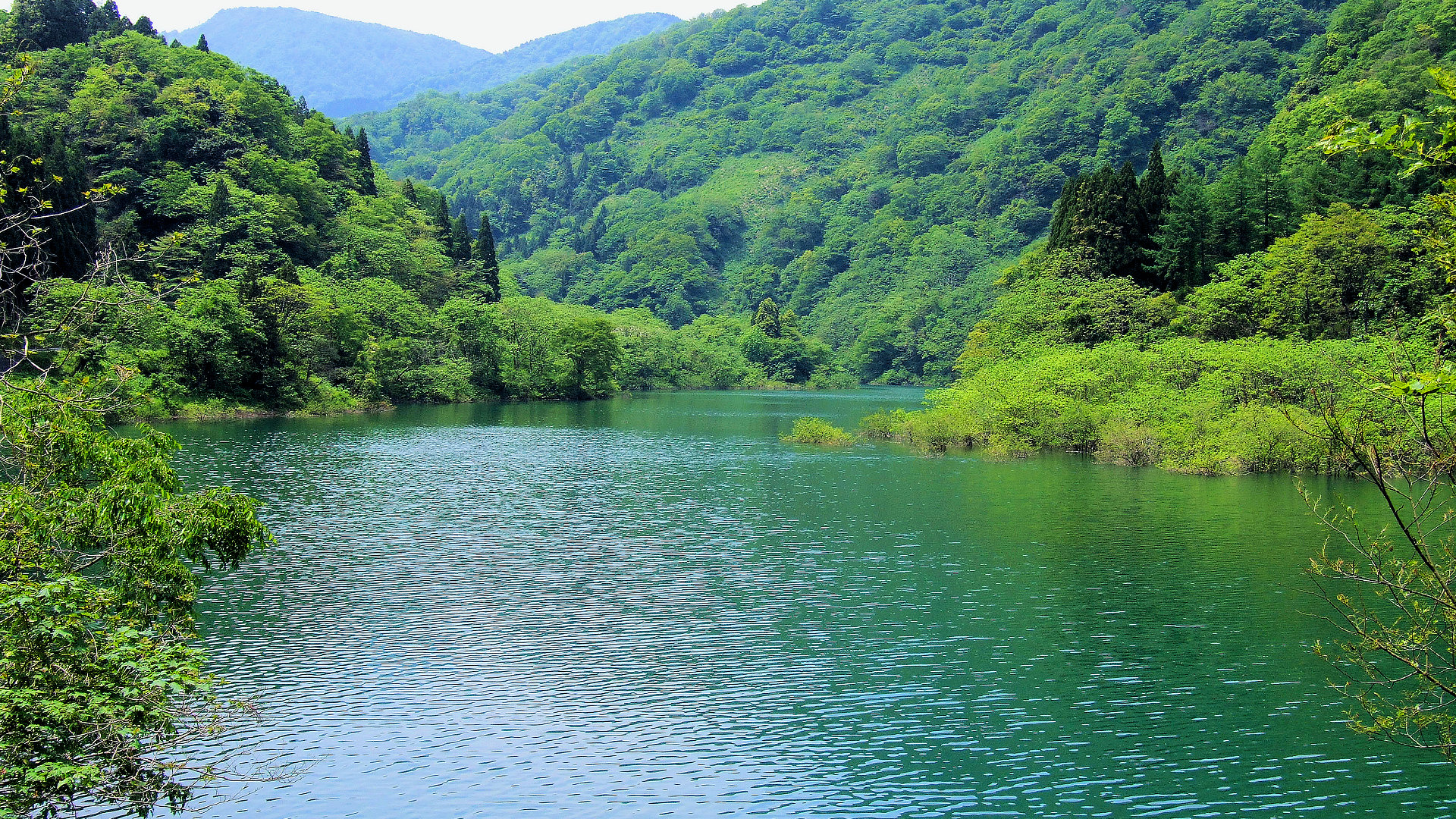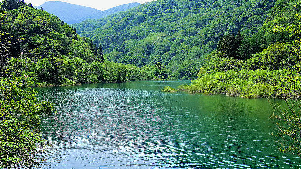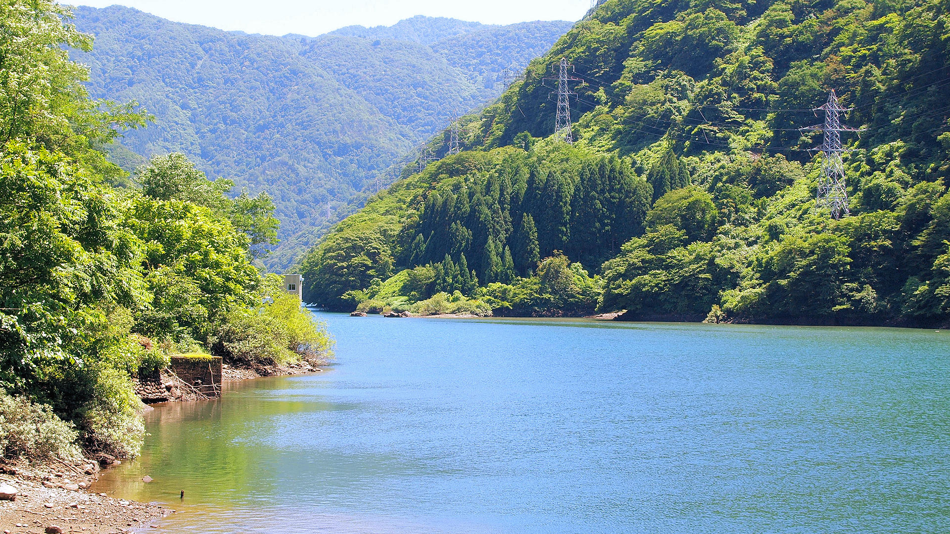 富山市八尾町正間の国道472号線から富山県営室牧ダム湖