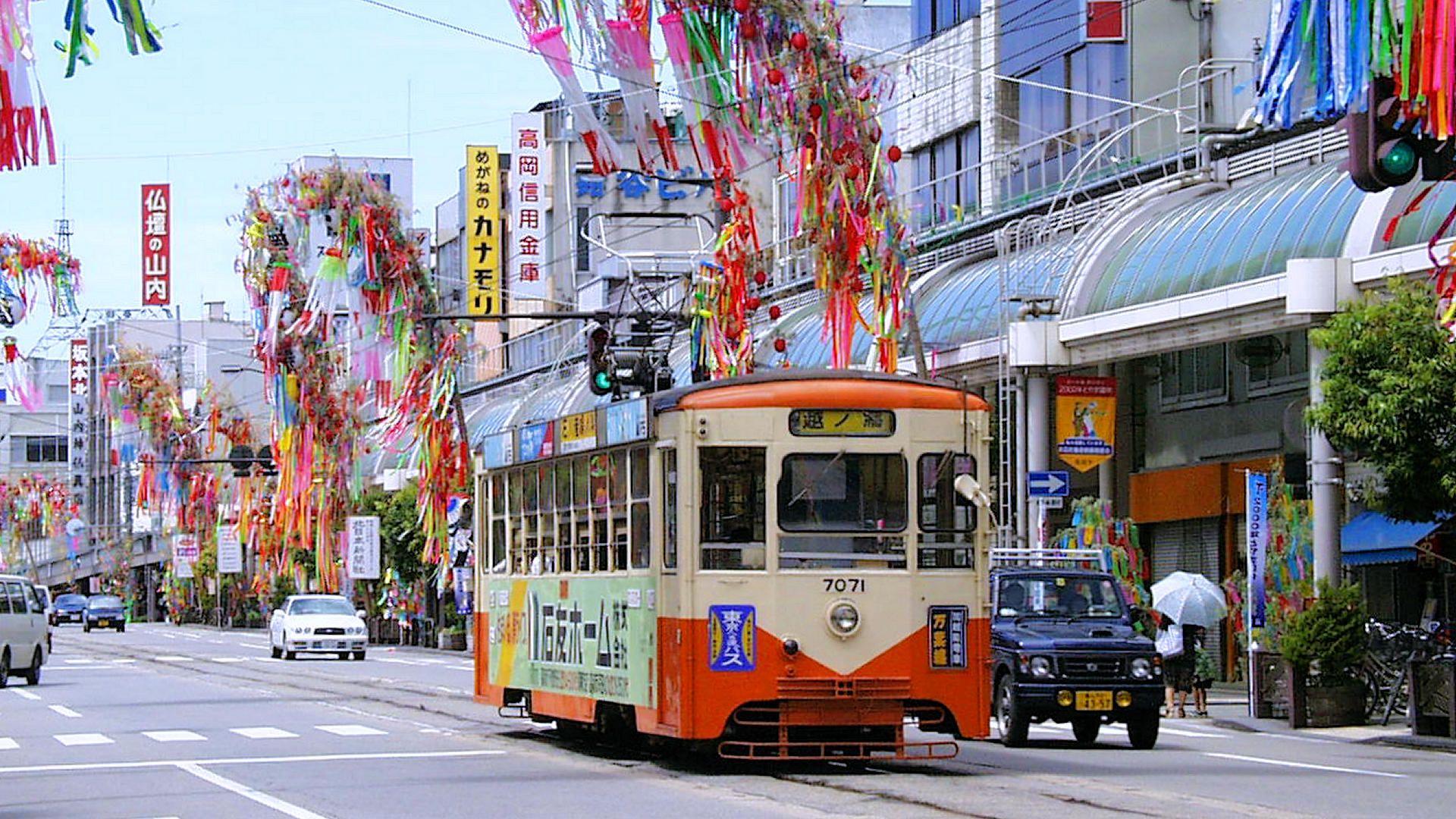 高岡軌道線末広町通りを走る7071越ノ潟行き 1999/07/31 撮影