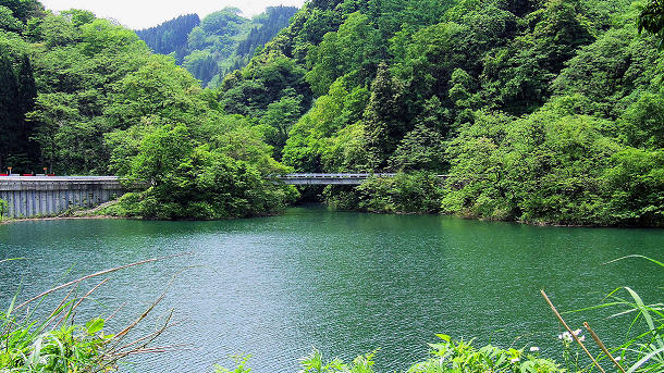 富山市八尾町正間の国道472号線から富山県営室牧ダム湖