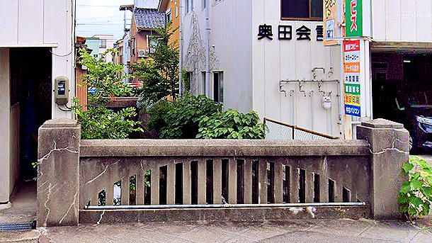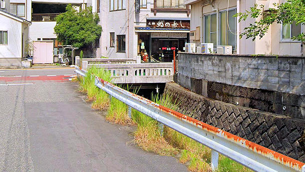 鱒の寿し「せきの屋」付近の助作川 この付近から上流側は暗渠