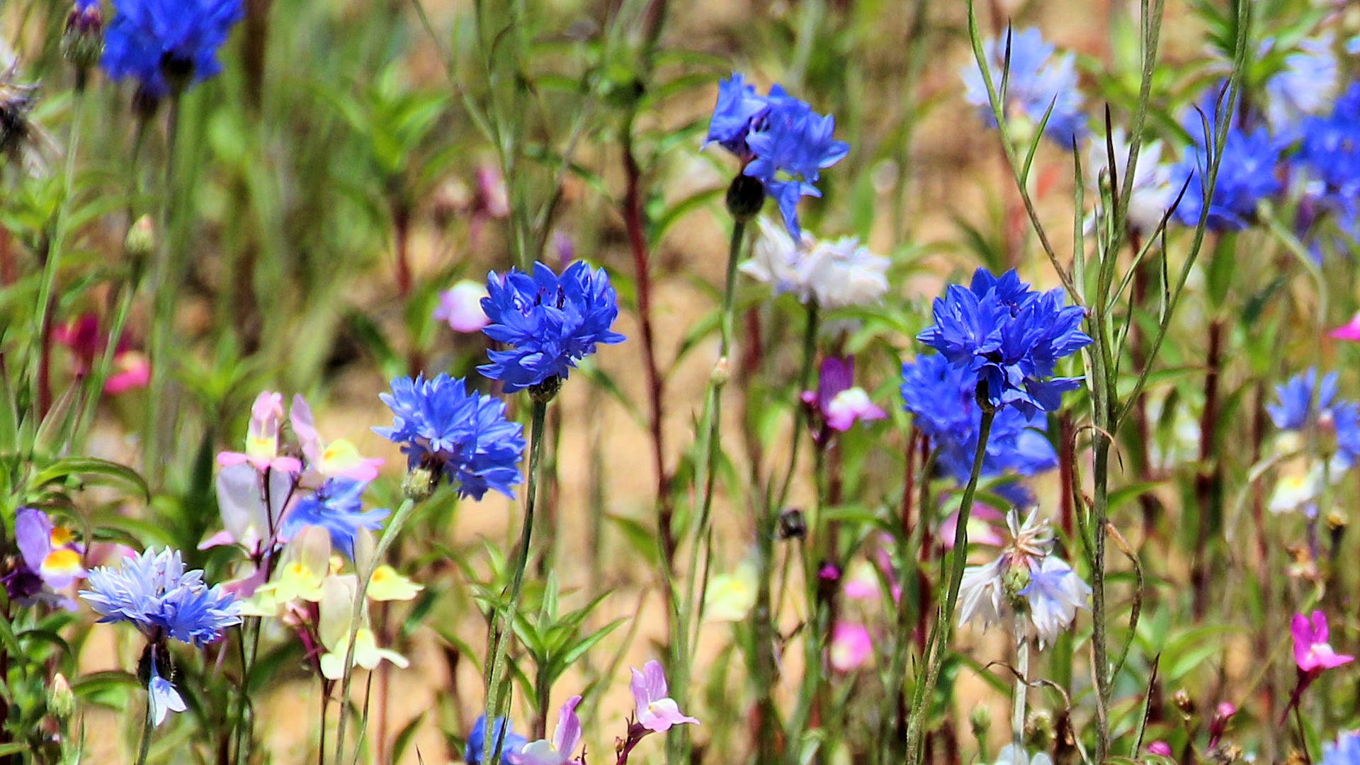 富山地方鉄道富山市内軌道線富山駅前花壇のヤグルマギク