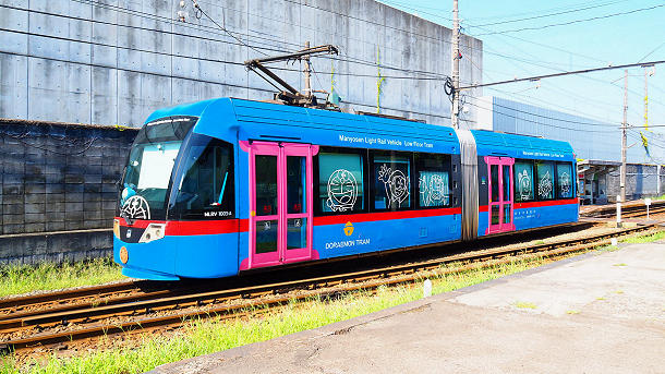 万葉線 新湊港線六渡寺駅に到着するMLRV1003高岡駅行き