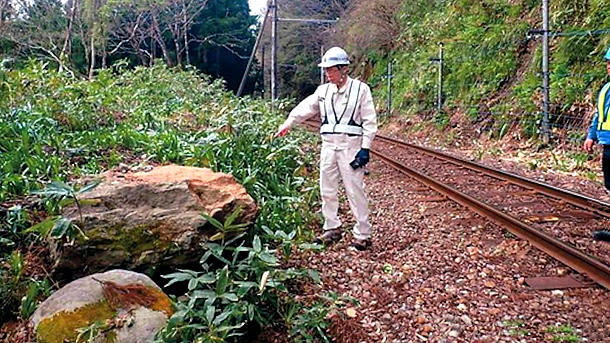 線路上への落石や倒木被害が発生した山間部の岩峅寺−立山駅間で県による