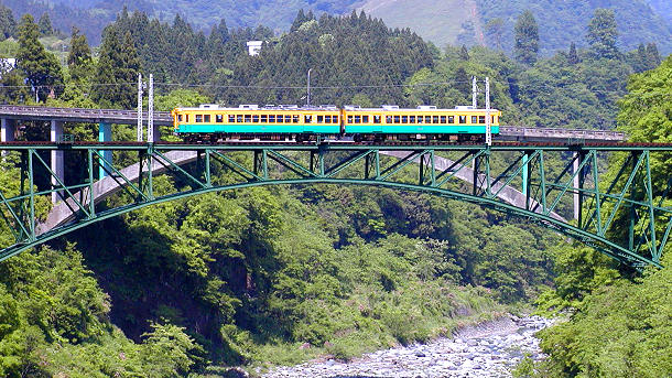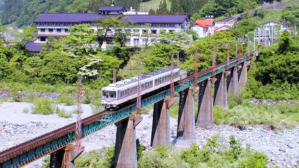 立山線は常願寺川千垣橋梁を渡ると富山市を走る、富山市には有峰口と本宮