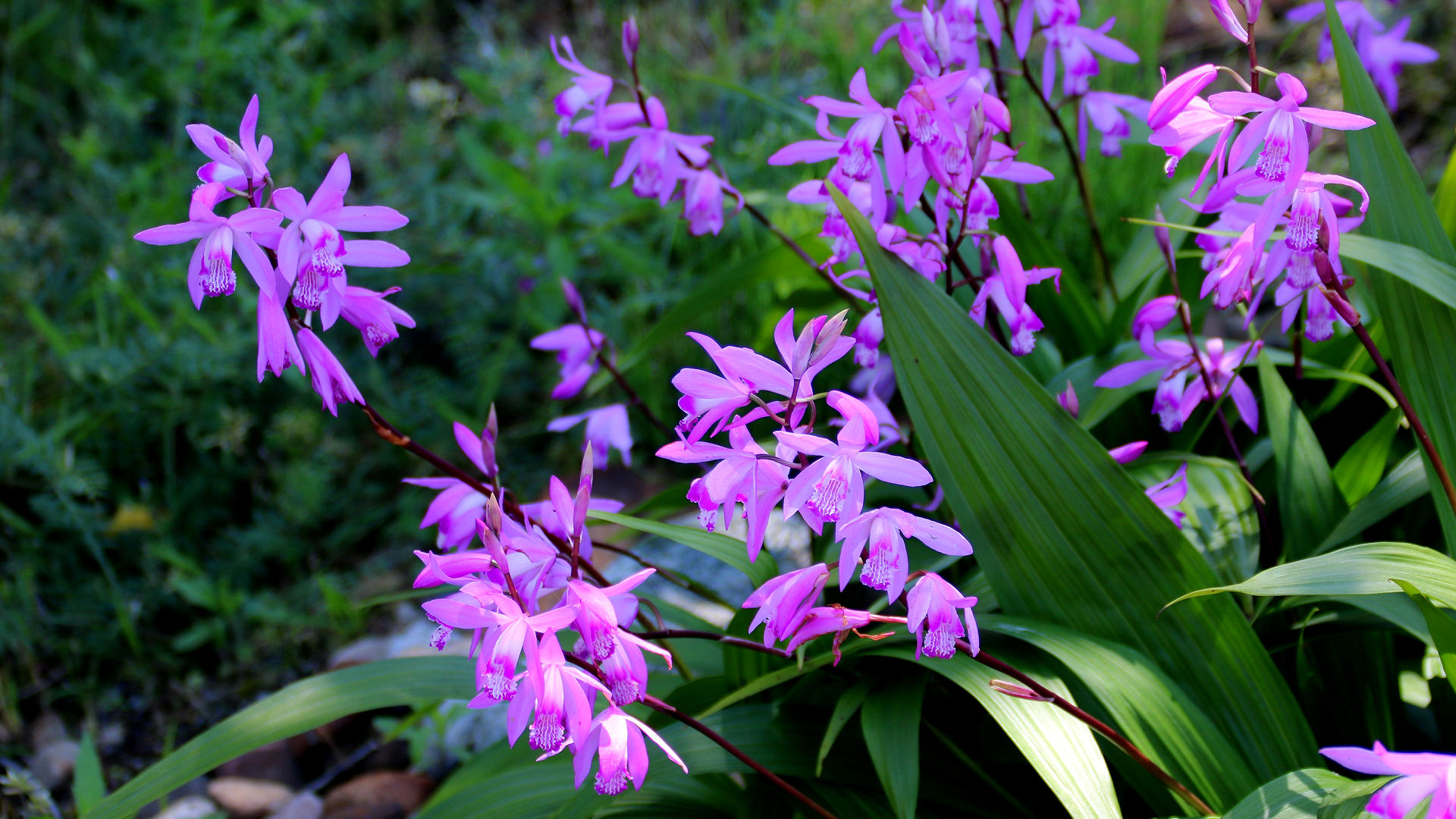 富山ライトレール富山港線下奥井駅花壇の紫蘭 2016/05/12 撮影
