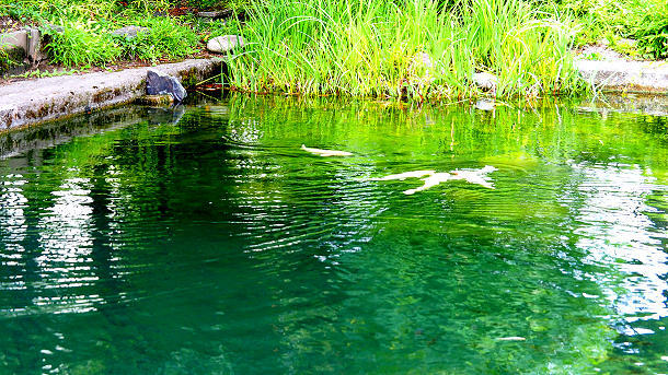富山地方鉄道富山市内軌道線諏訪川原電停前の諏訪社の亀の池
