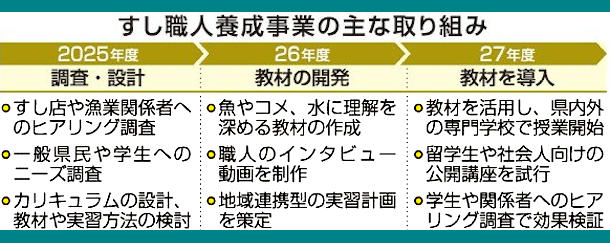 事業初年度の2025年度は事前調査に重点を置く。県内のすし店や漁業