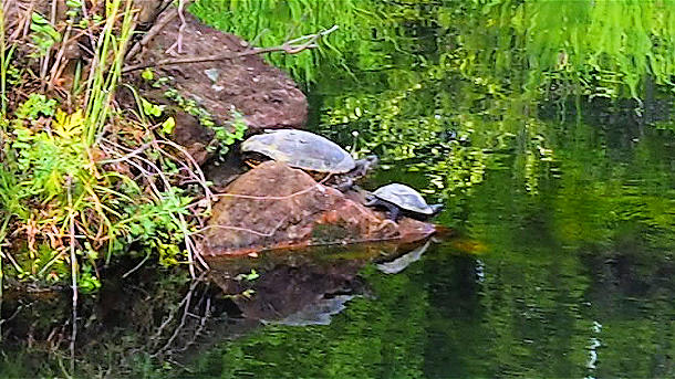 クサガメ拡大 大きいのがメスで甲羅の3本のキールが小さい