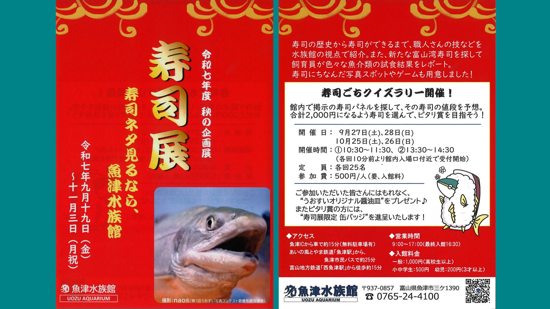 魚津水族館の秋の企画展「寿司展」が、同館で開かれている。魚が捕獲さ