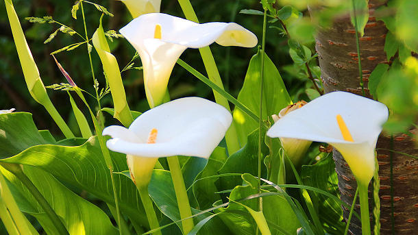 石川県珠洲市狼煙町の禄剛埼灯台付近に咲くオランダカイウ