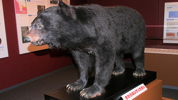 県立山博物館のツキノワグマの剥製 撮影可能の表示有り