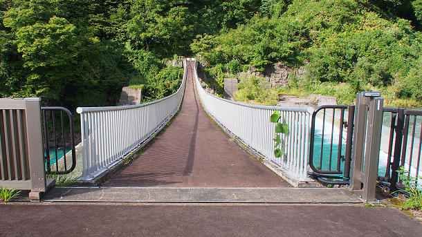 本宮砂防堰堤前に架かる歩道橋「心のかけはし」