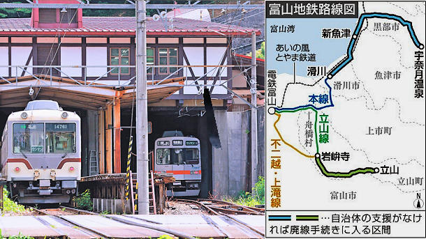 が焦点だ。黒部市を中心に利用実態などを調査中で、全線維持や並行区間廃