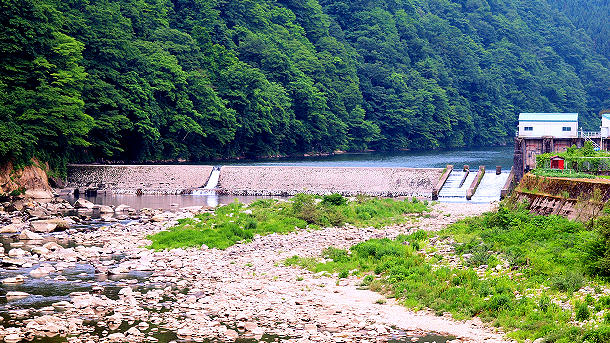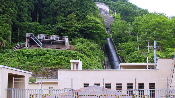 須川支流の大切谷川に設け、有効落差は33mある。年間発電量は29万キ