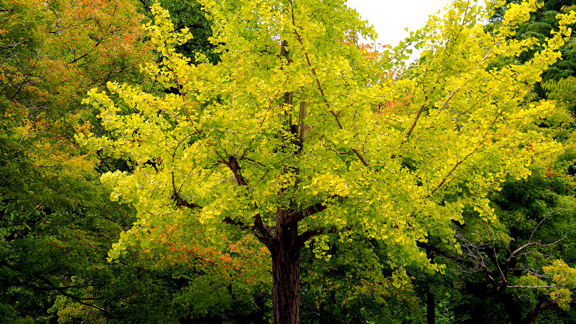 富山市五福の富山県五福公園の紅葉したイチョウ 2025/09/13 撮影