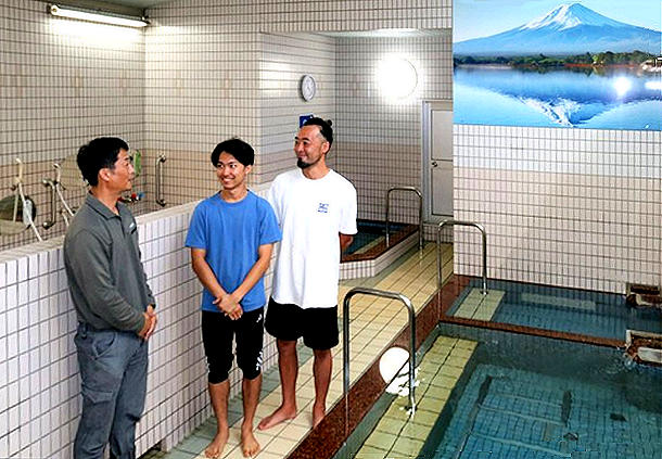 中平代表の下で働く竹内将大さん(29)が観音湯に住み込み、店長とし