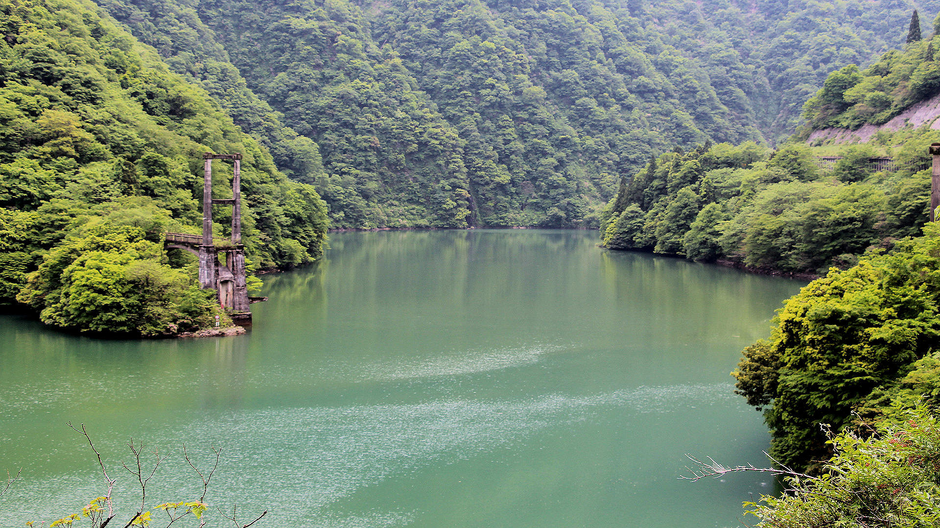 国道156号線から旧利賀大橋の橋柱 2014/05/25 撮影