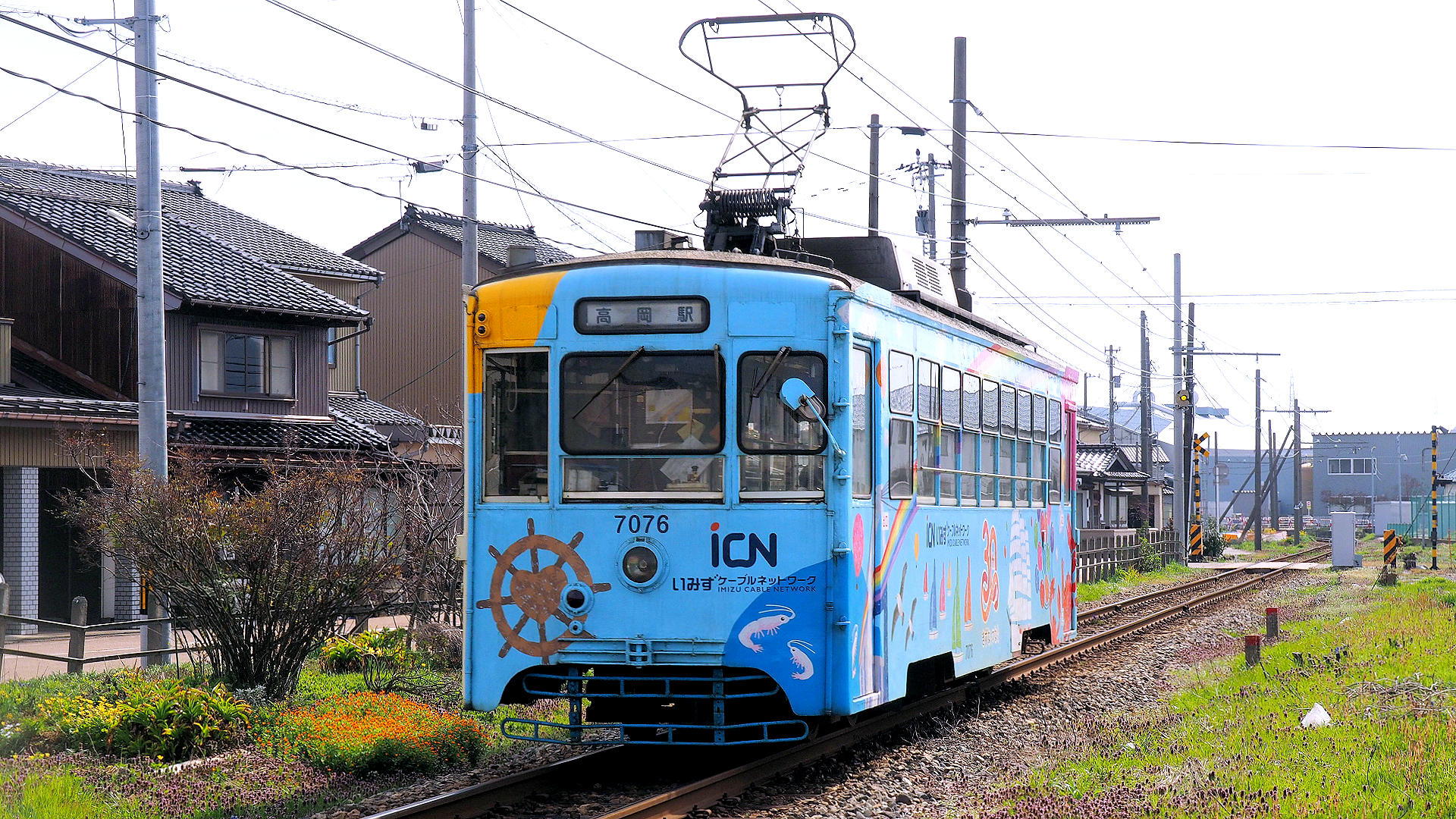 中伏木駅を通過した7076高岡駅行き 2024/04/04 撮影