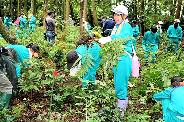 に植樹した苗木の成長を確かめながら、周辺での除草作業に汗を流した。