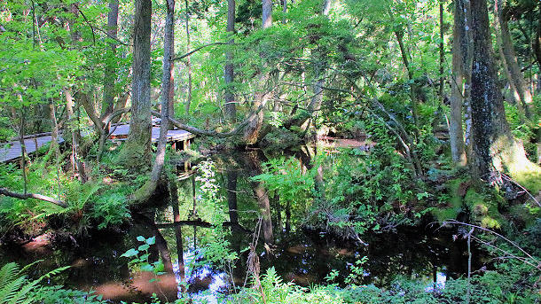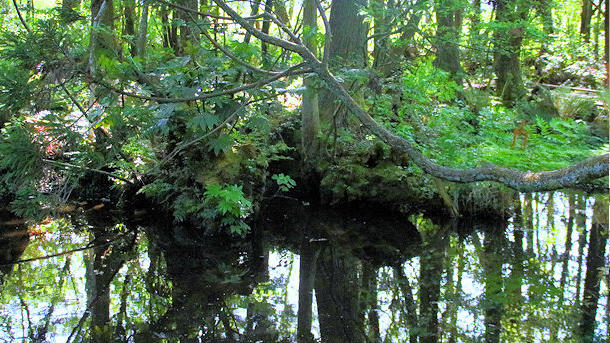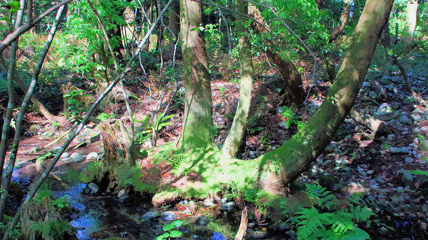 倒れた幹から幹が何本も伸びる「伏条更新」