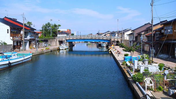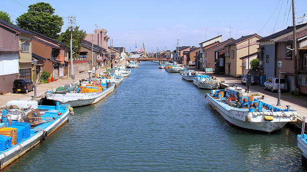 山王橋付近から東橋側 内川特有の漁船が並ぶ