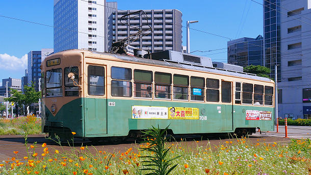 内交差点で市内電車を撮影。大学前行きの本数が増えているように感じた。