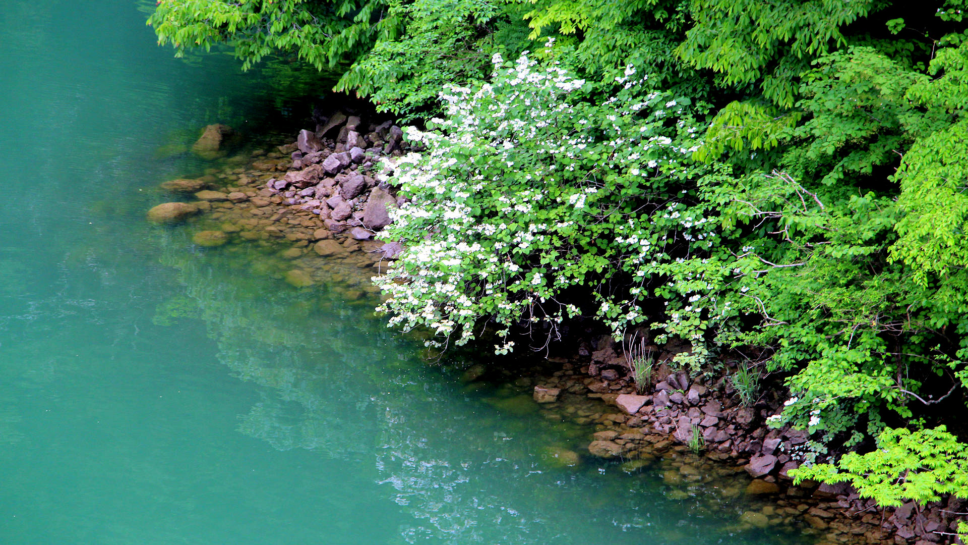 長崎大橋からダム湖右岸のヤマボウシ 2014/05/25 撮影