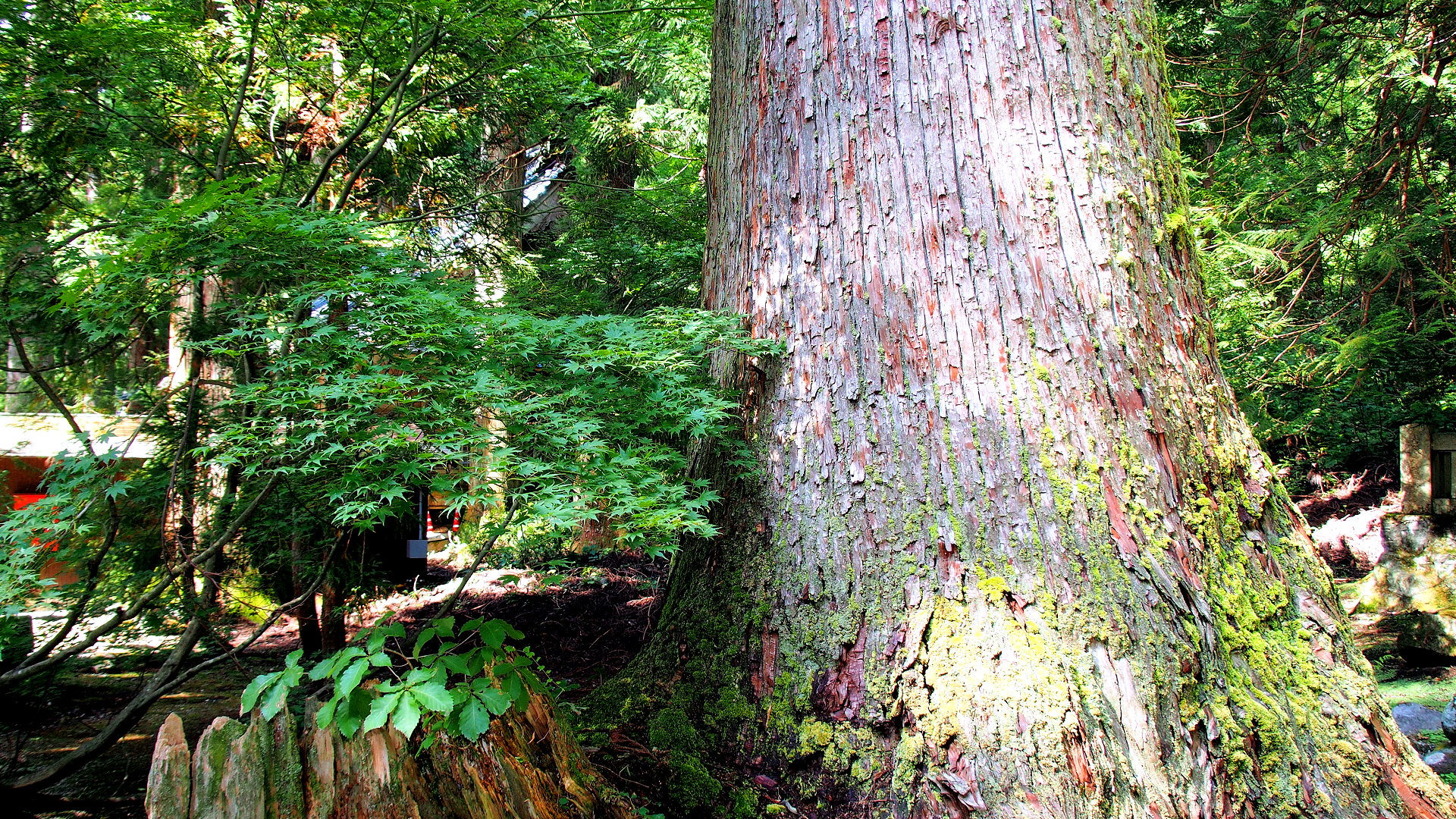 立山町芦峅寺の雄山神社 中宮祈願殿 立山若宮前の杉の巨木