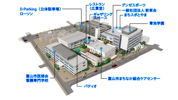 市総合ケアセンター、D-Parking立体駐車場などの官民連携の総合複合施設