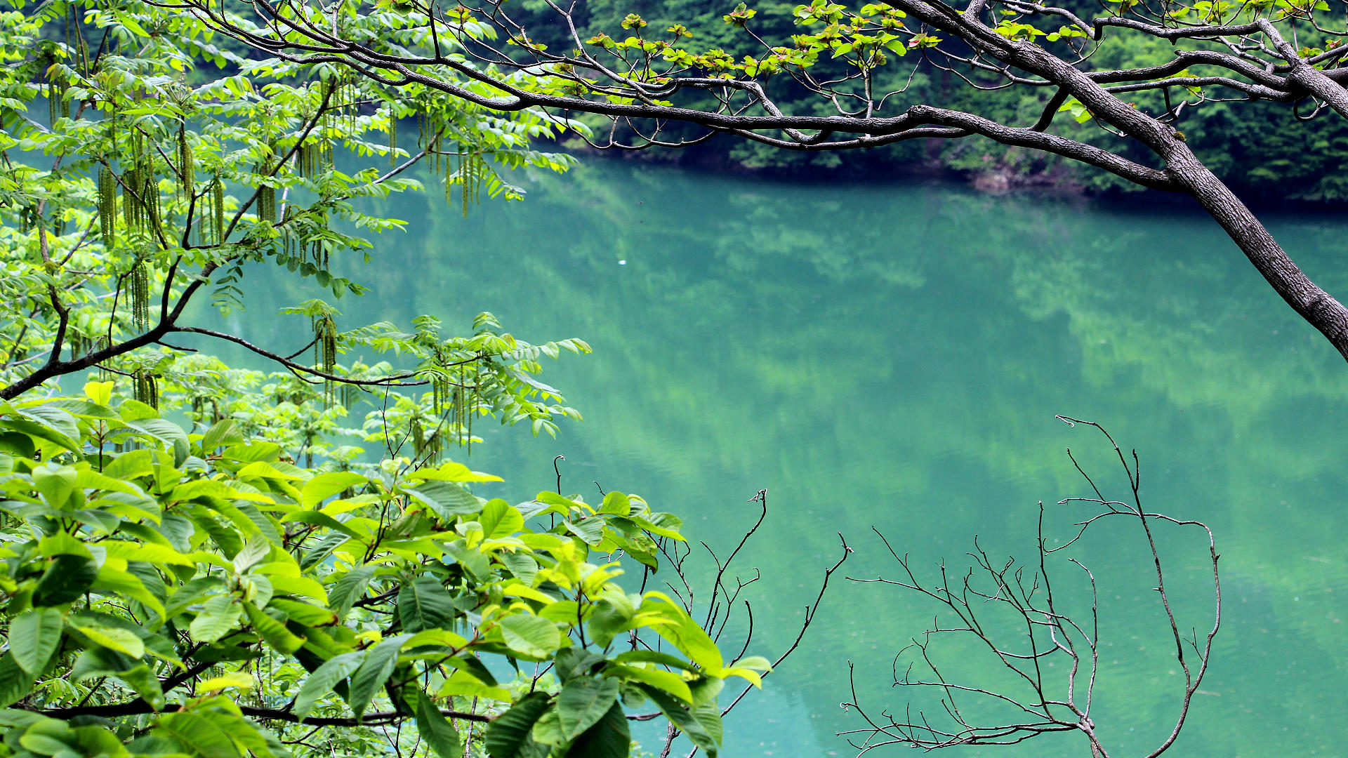 に晴れ、青空の下で池に絶景が映り込んだ。待ちわびていた人は感嘆の声を