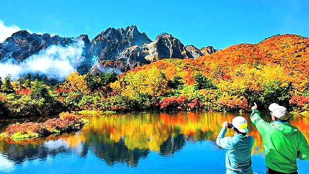 仙人池(標高2080m)では、周囲の木々が紅葉の見頃を迎えた。